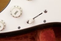 Diese Fender Stratocaster wurde früh im Jahre 1970 mit einigen 69er Teilen komplettiert. Jedoch stammen alle Produktionsstempel aus den ersten Wochen des Jahres 1970. Nach Rücksprache mit allen Vintagestrats.de-Sachverständigen beschlossen wir, diese 70er, der besseren Vergleichbarkeit wegen, als 69/70er vorzustellen. Schließlich entsprechen alle Details denen einer echten 69er. Mehr noch, diese Referenzgitarre besitzt einen Body mit dem berühmten schmalen Routing!